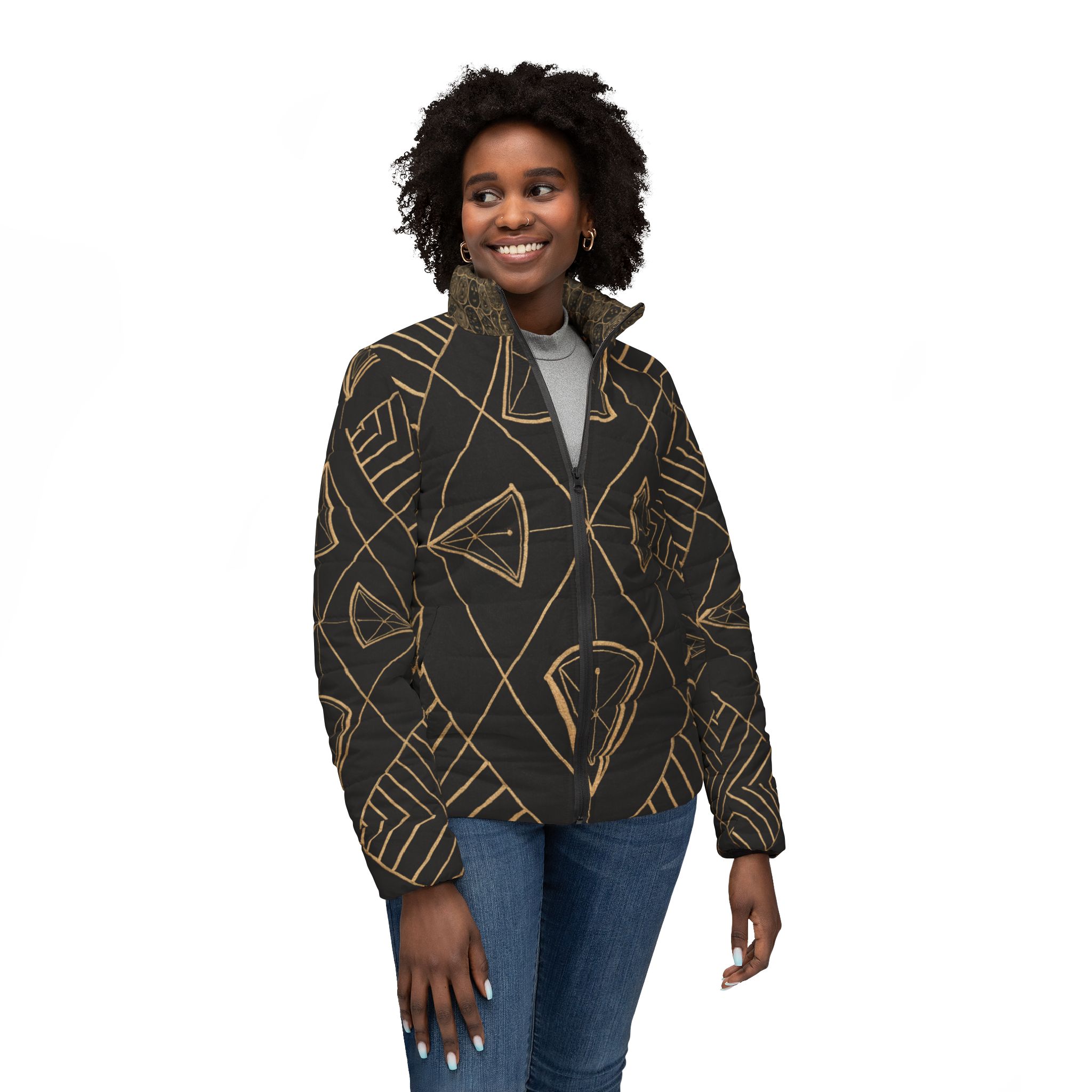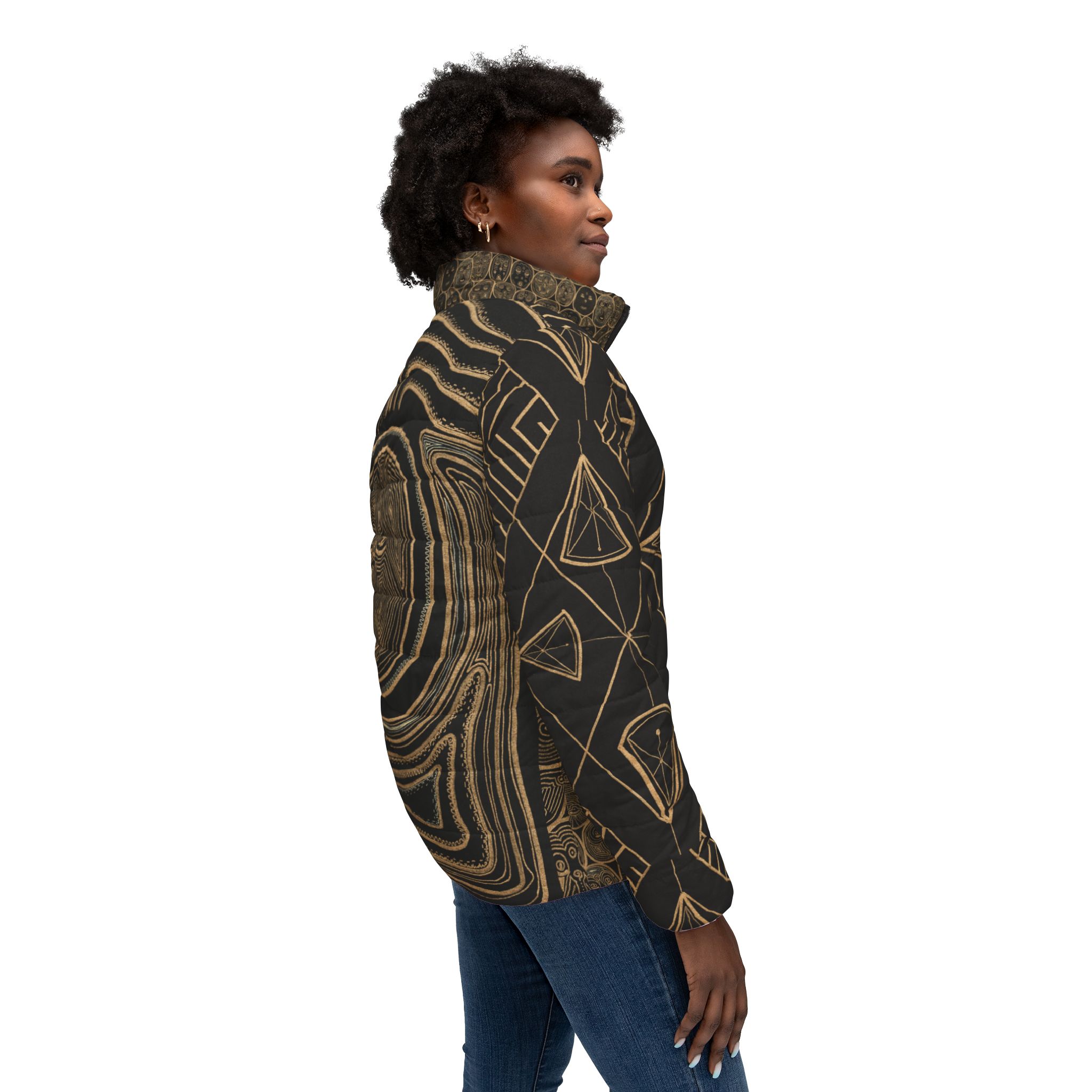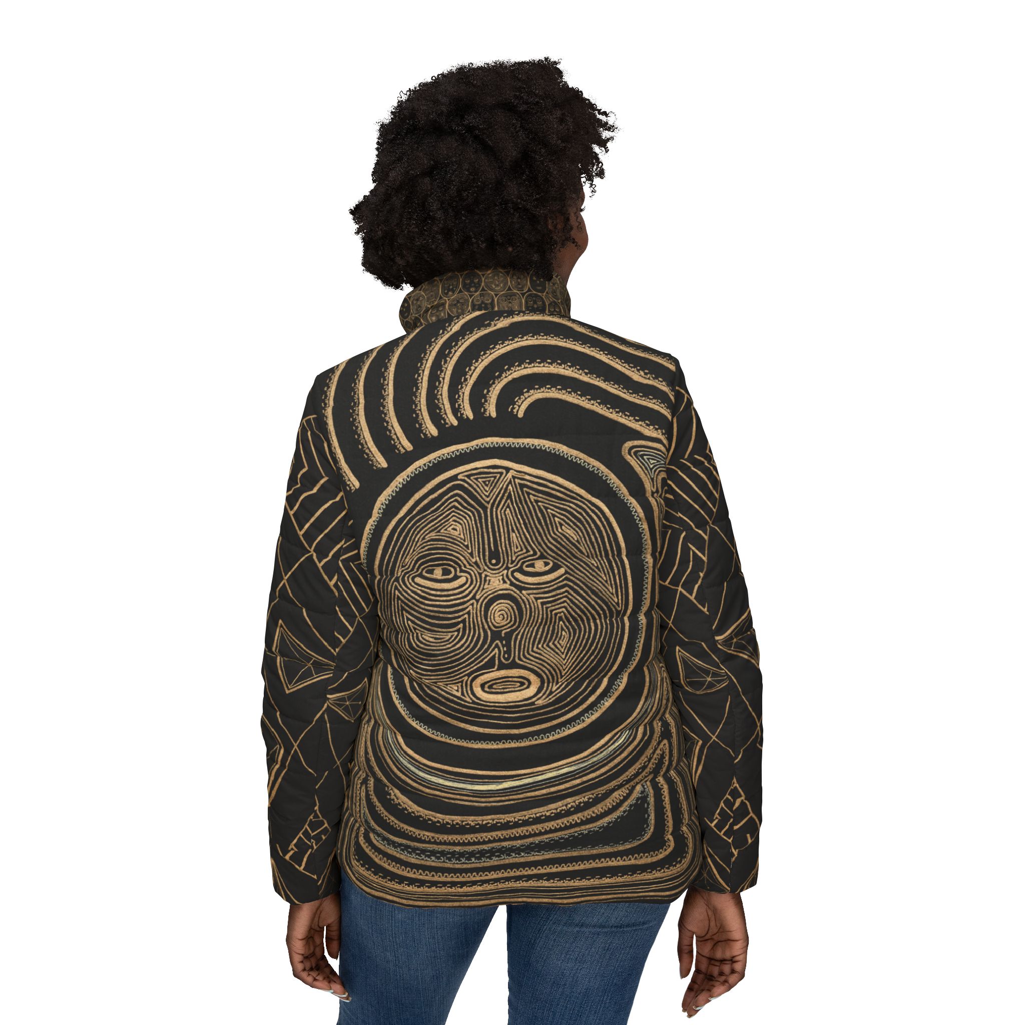 This puffer jacket carries focused energy β a warm hug around your heart center and a quiet nod to the elders and traditions that shaped you. The cropped silhouette and vibrant all-over print read like a talisman: bold colors that donβt fade, a soft padded interior that cushions the shoulders, and thoughtful pockets to tuck in small rituals β a slip of sage, a worn stone, or cold hands. Wear it on crisp mornings when you need steadiness, at community gatherings that honor lineage, or out wandering through city streets where ancestral stories follow in your footsteps. The feel is both energized and grounded: bright, resilient, and ready to move with you through everyday rites and seasonal celebrations.